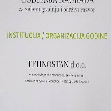 Dana 24.11.2021. u sklopu središnje konferencije o održivoj gradnji dodijeljene su godišnje nagrade.