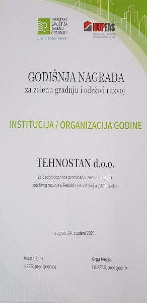 Ovo je još jedno u nizu priznanja koje Tehnostan svrstava uz bok najrazvijenijih upraviteljskih i energetskih tvrtki.